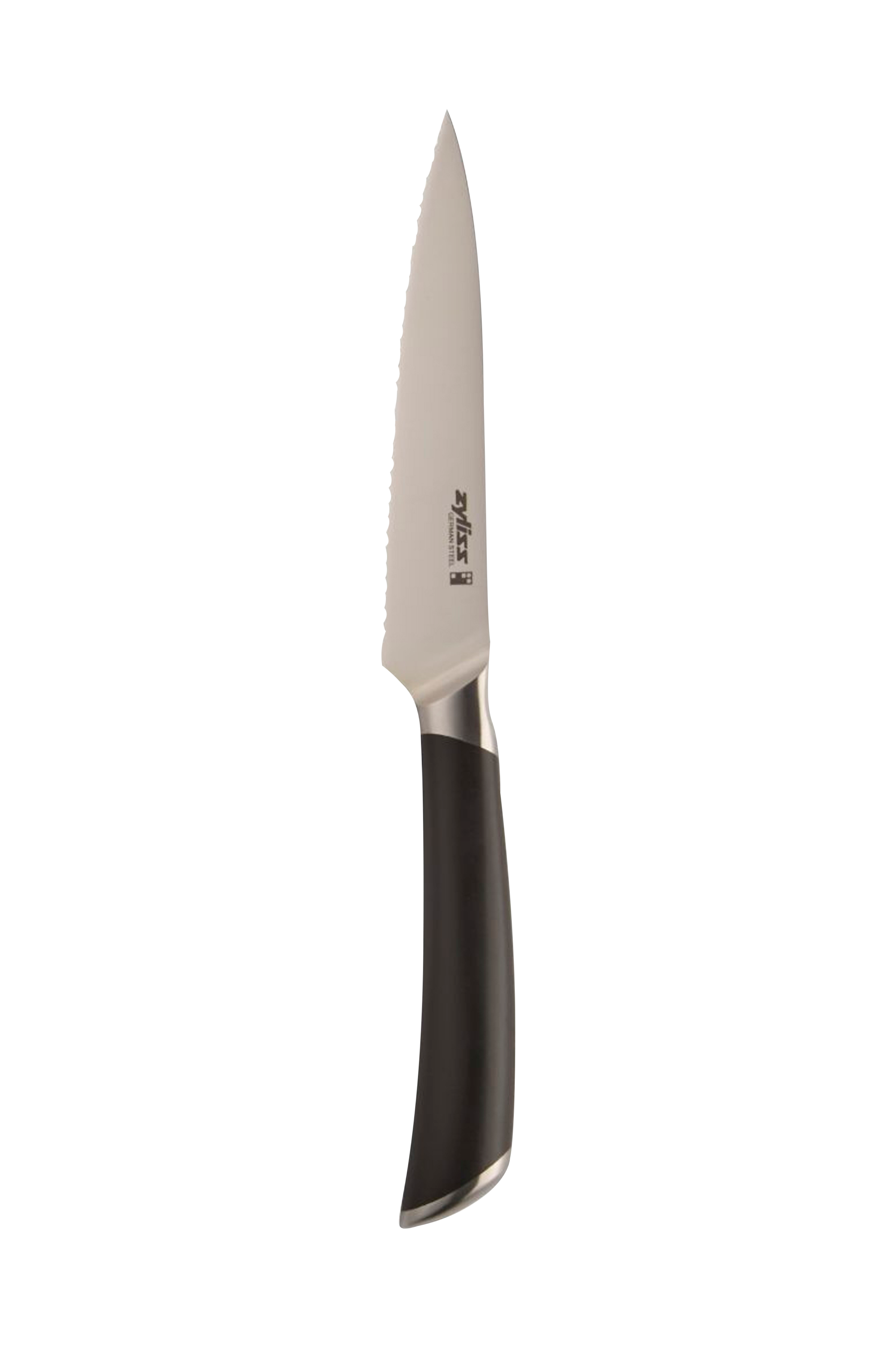 Comfort pro -terässä on 11,5 cm:n jäässä kovetettu 15 °:n saksalainen ruostumaton terä, ja se on suunniteltu leikkaamaan tuotteita, joissa on kova kuori ja pehmeä hedelmäliha, kuten tomaatteja, persikoita tai kiivejä. Terävän hammastetun terän ja kapean profiilin ansiosta se liukuu helposti tuotteiden läpi vahingoittamatta mureaa lihaa. Ergonominen kahva on suunniteltu päivittäisen käytön mukavuutta varten. Se istuu täydellisesti käteen ja siinä on kapeneva pultti, joka antaa tukevan otteen käytön aikana. Kahvan yläosassa oleva sormisyvennys tarjoaa kätevän paikan, johon etusormi voidaan asettaa leikattaessa.